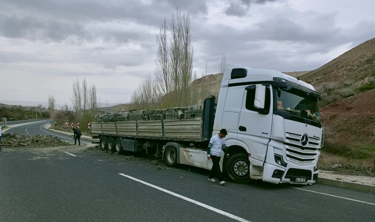 Kontrolden çıkan tır karşı şeride geçerken, yola savrulan yük nedeniyle trafik bir süre durdu.