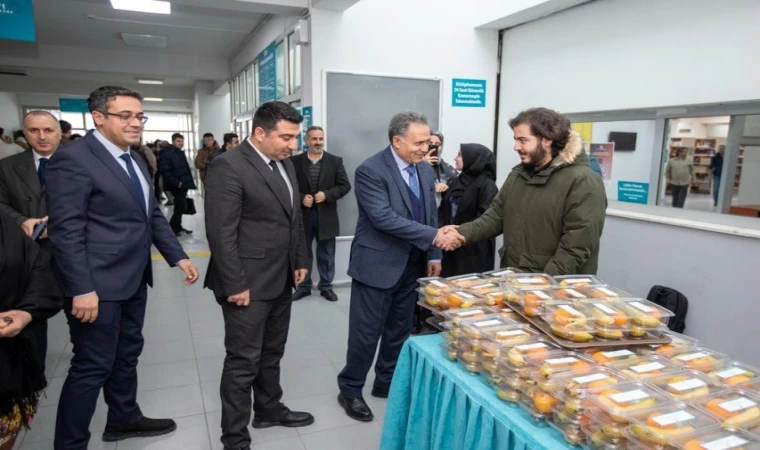 Kütüphane içindeki salonlara uğrayarak sınavlara çalışan öğrencilere ikramlarda bulunan Rektör Akpolat, öğrencilerle bir süre sohbet ederek başarı temennisinde bulundu.
