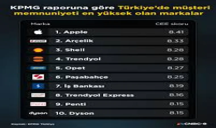 KPMG tarafından yapılan araştırmaya göre, Türkiye’de müşterilerini en çok memnun eden markalar belirlendi. Listenin ilk sırasında Apple yer alırken, Arçelik ve Shell de ilk üçte yer aldı.